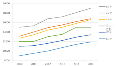 圖十:按年齡分組的香港月收入數字