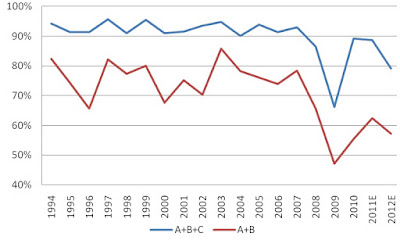 1)未來兩年幾乎所有用途嘅樓面都會供應短缺—筆者在此欄已經多次疾呼住宅、寫字樓供應短缺嘅來臨及點解政府要作非常動作去解決問題(如:速賣四萬住宅單位嘅地,加快批地及搬走灣仔政府三廈等)。今次用番差餉物業估價署嘅落成預測及過去年平均吸納量,淨係寫字樓已經嚇死人:至2012年底,全港寫字樓嘅空置率會跌至5.3%嘅超低水平【圖一】,呢個係1981年有統計數據以來第二低嘅空置率!如果唔係咁十萬火急,筆者都唔會喺上星期以《亡羊補牢》為題為政府獻救急之策啦!;