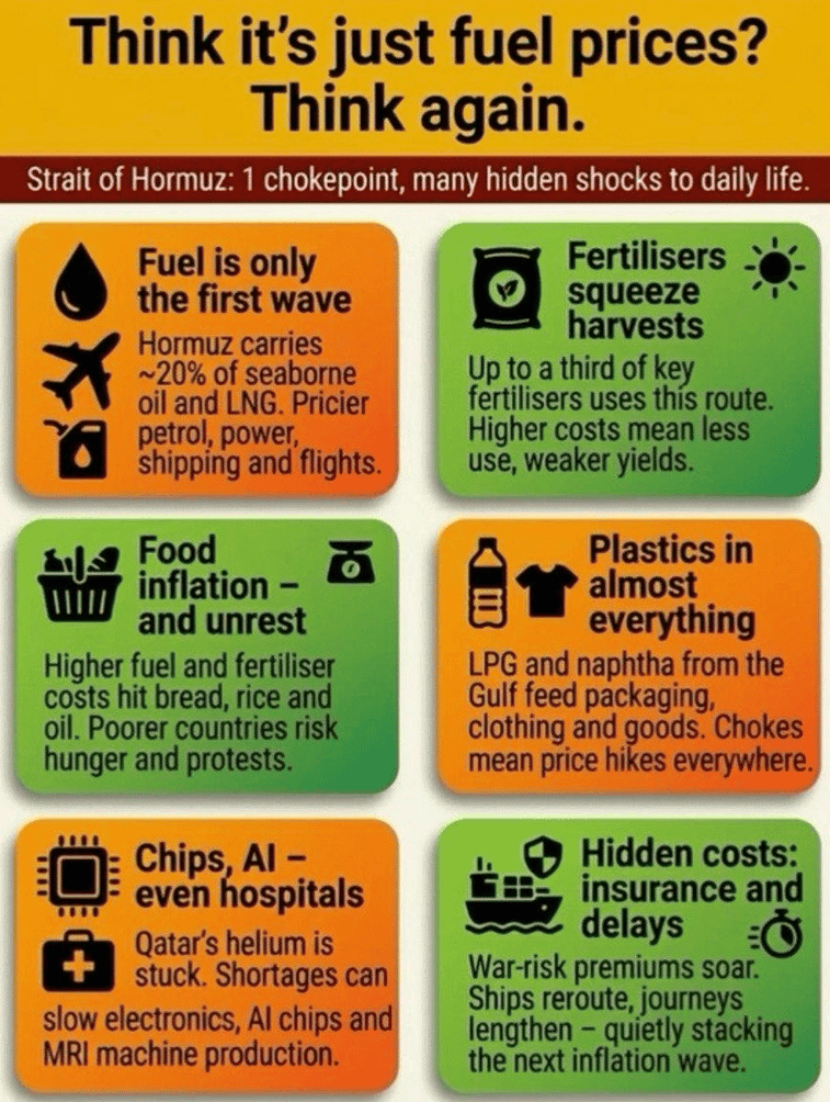 The more obvious issue most people are aware of, is that oil supply disruption increases costs of everything, but from the food perspective, the impact on supply can be leading to shortages soon: